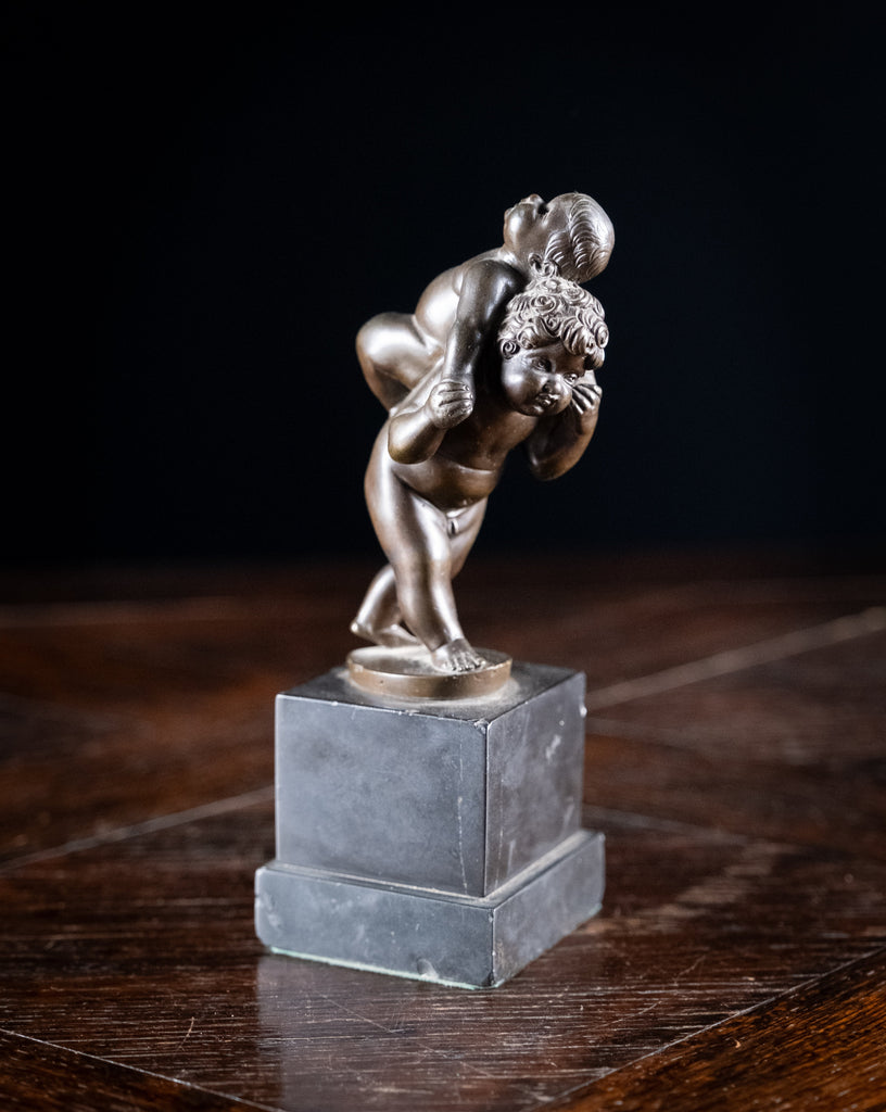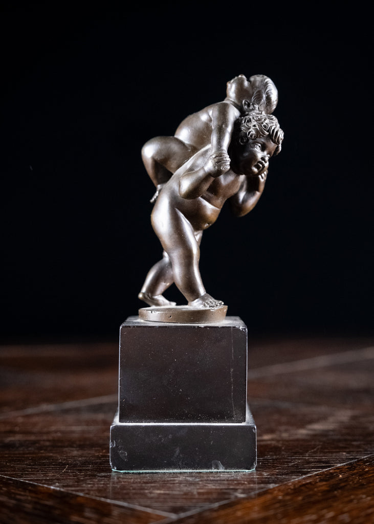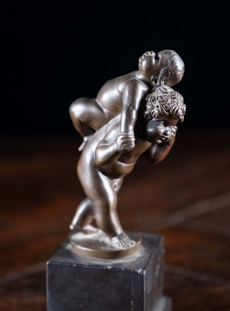 A delightful bronze depicting putti playing piggyback after Leonhard Kern (German, 1588-1662). A cast of the same model dating c.1640 is in the Walters Art Musuem, Maryland.