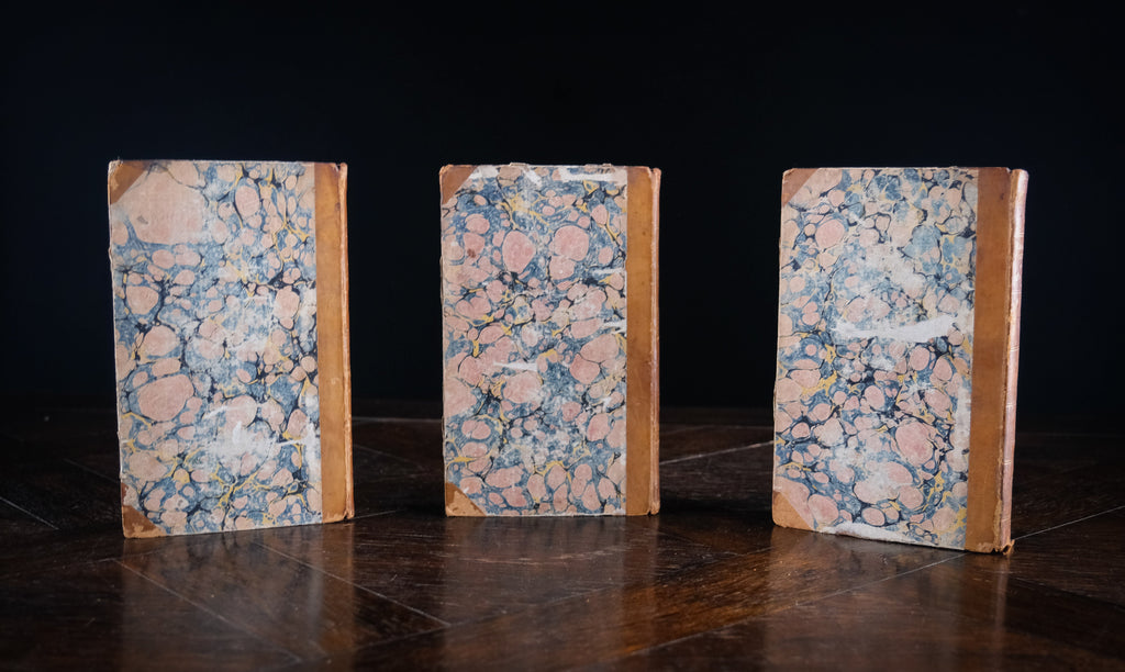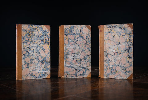 This scarce set is three-quarter bound in tan calf leather with marbled boards and gilt stamped title and banding to the spines. All volumes show signs of shelf wear but the boards remain firmly affixed and the bindings tight.