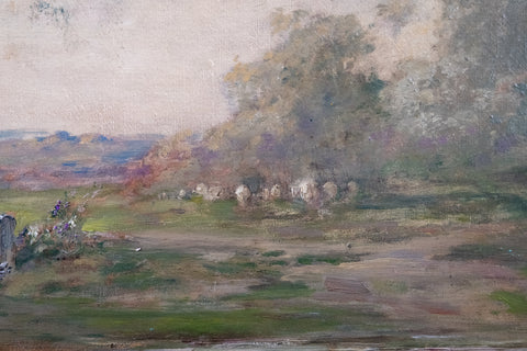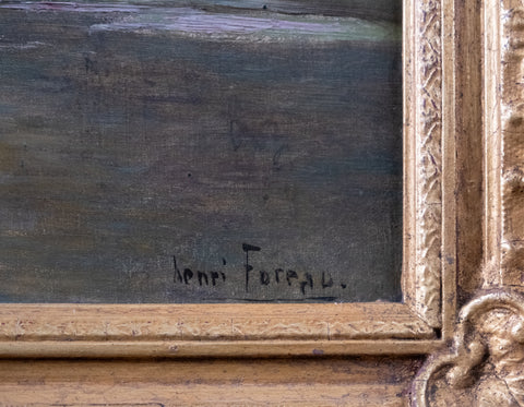 An outstanding rural landscape scene of large proportions by Lois Henri Foreau (French, 1866-1938). Oil on canvas.