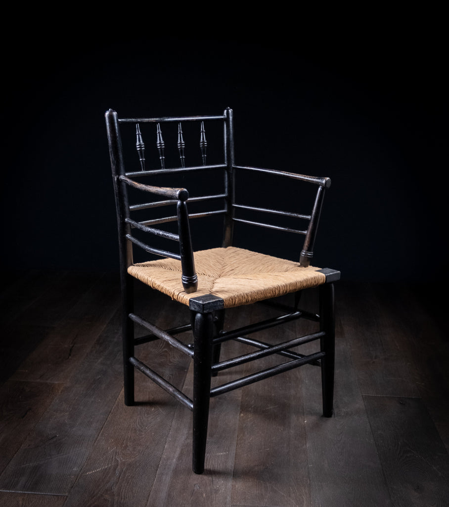 A fine 19th century Morris & Co Sussex chair, c.1870. Designed by Ford William Maddox for William Morris.