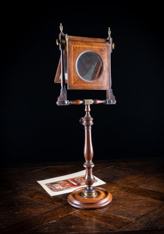 The zograscope was considered the height of technology in its time and as such, they are usually finely made with turned wood and inlays, ready to show off to guests during parlour entertainments.