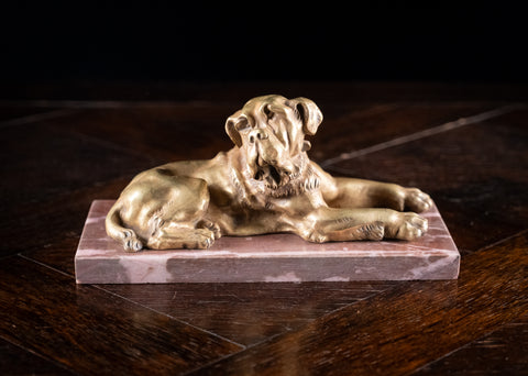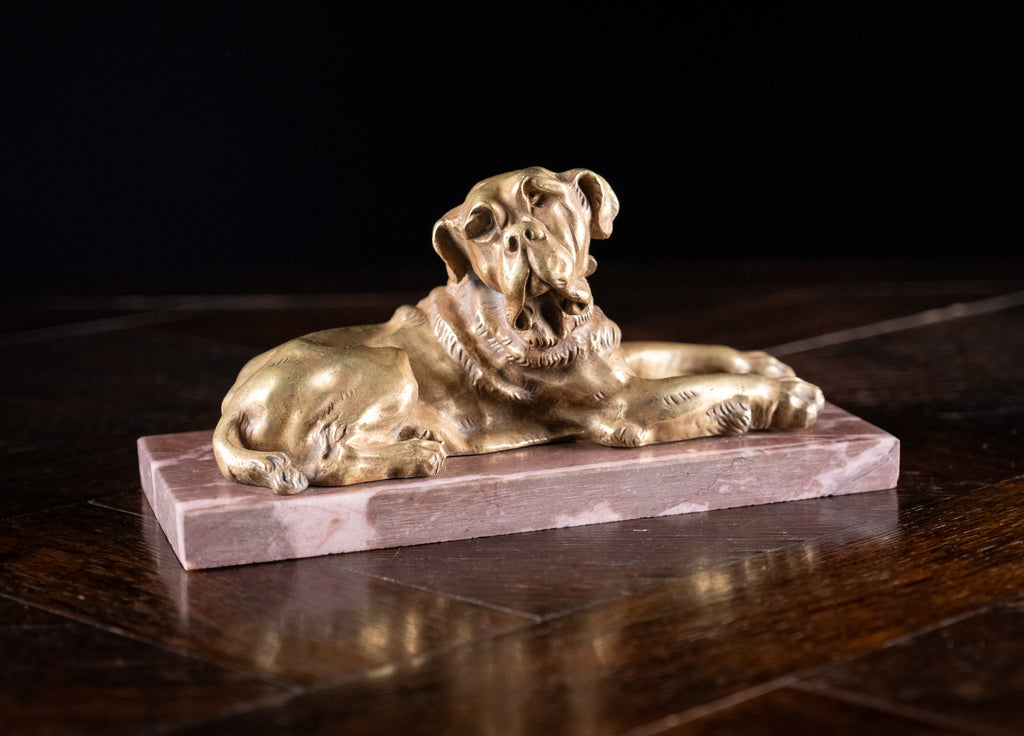 A 19th century gilt bronze mastiff on a veined marble base of good proportions. Probably French School. c.1880.