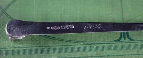 A delightful George V period silver novelty fox letter opener / paper knife, fully hallmarked for Stokes & Ireland, Chester, 1933. Later engraving of '1. 1. 35' verso, as well as a lightly done 'M. Craggs' to the very top back.