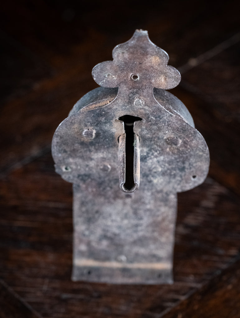 The lock is of good proportions with a fine grey/black patina. Excellent quality workmanship throughout with fine floral engraving.