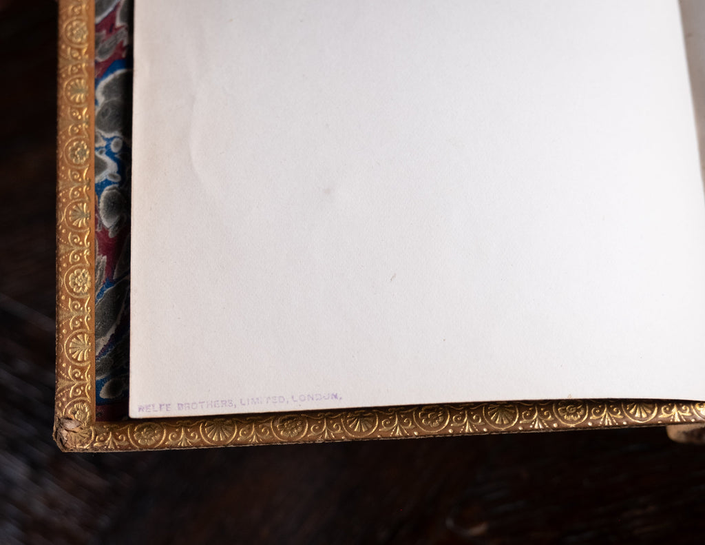 Marbled page edges. Marbled pastedown. Small pencil inscriptions to the front endpapers. All other pages remain in an excellent condition; clean, bright and free from inscription.
