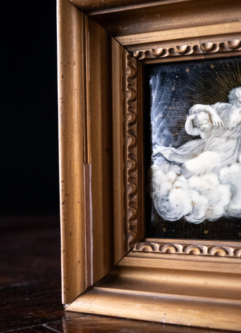 A stunning 19th century Limoges enamel panel with gilt detailing depicting a celestial scene.