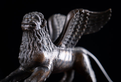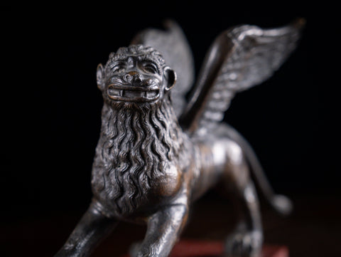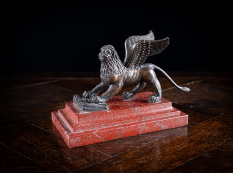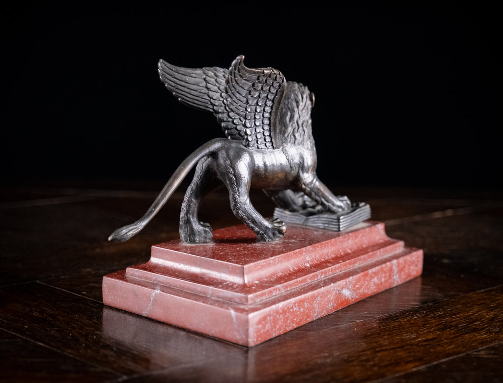 A handsome Grand Tour bronze depicting the Lion Of Saint Mark upon Rossa Francia marble base, c.1880.