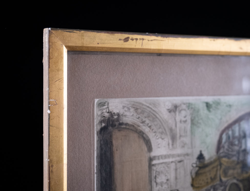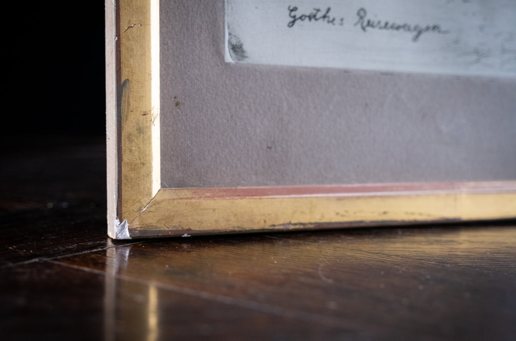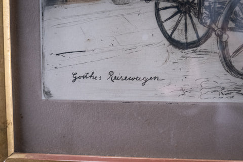 A hand-coloured etching of 'Goethe's Reisewagen' ('Goethe's Travelling Carriage'), dated 1911. Signed beneath the plate.